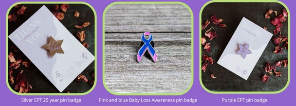 Our attractive EPT purple five-pointed badge helps to raise awareness of the charity.